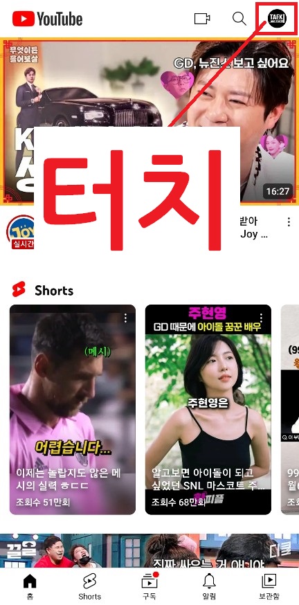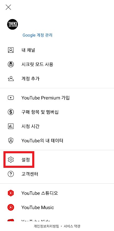 유튜브 리밴스드 홈에서 오른쪽 상단에 있는 로그인 아이콘을 터치 후 설정에 들어가 줍니다.