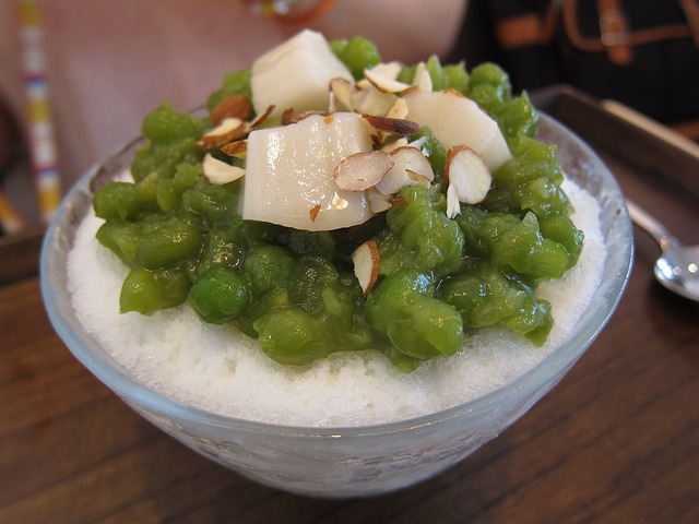 팥, 과일, 떡 등을 올려 먹는 빙과류 팥빙수는